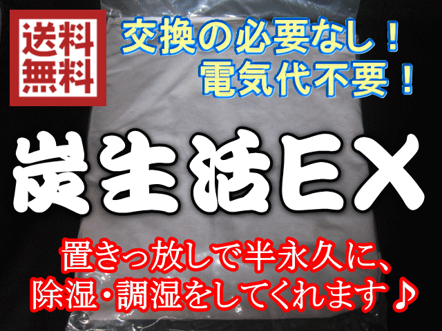 炭生活EXは、押入れ、クローゼット、天井裏、床下、畳の下、ベッドの下、キッチン、調味料棚、シンクの下、階段下の収納庫、玄関、下駄箱、トイレ、洗面所など、湿気が気になる場所に置くだけで、半永久に除湿・調湿をしてくれる湿気取りです。